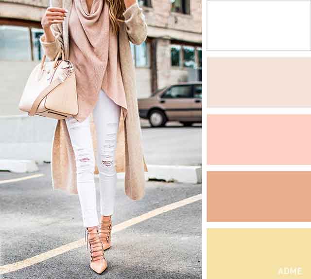 Чтобы создать нежный и женственный образ, носите розовый цвет. Он сочетается с белым, бежевым, голубым, коричневым, синим. Самое выигрышное сочетание розовый цвет образует с белым: в таком виде можно пойти даже на работу или деловую встречу.