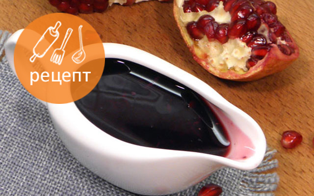 Поджарить мелко нарезанный лук, добавить сахар, вино, гранатовый сок, лимонный сок, чеснок, соль, лавровый лист, мускатный орех, перец и крахмал.