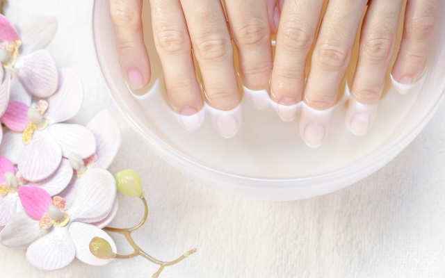 - Погружаем руки в отвар на 10 минут. Вытираем руки полотенцем и втираем в кожу рук пару капель эфирного масла персика.