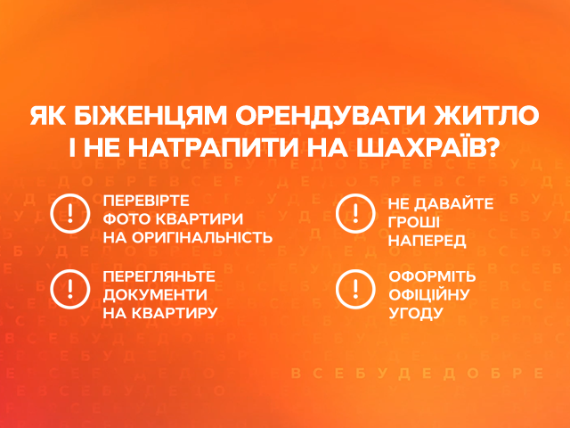 С началом полномасштабной войны многим украинцам пришлось покинуть свои дома и искать убежища в более безопасных регионах страны. Однако мошенники не спят и даже в такое тяжелое время пытаются нажиться на людях. В новой рубрике «Надійні поради» от «Все буде добре» Надежда Матвеева рассказала о том, как уберечь себя от мошенников при поиске жилья.