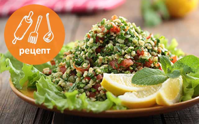 Подавать табуле на листьях салата.