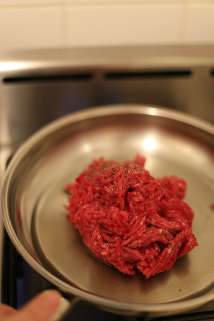 Мясной фарш (лучше говяжий). Порубить довольно мелко.