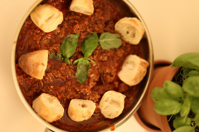 «Соус этот очень похож на болоньезе, но все куда интересней, – говорит Анна Кушнерук. – Его можно использовать для пирога, а также кушать просто так в компании друзей – вприкуску с хлебом и базиликом».