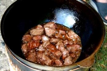 Наливаем на дно казана подсолнечное масло и доводим его до кипения. При желании в предварительно разогретый казан можно еще кинуть для обжарки кусочек жира (например, бараний курдюк).