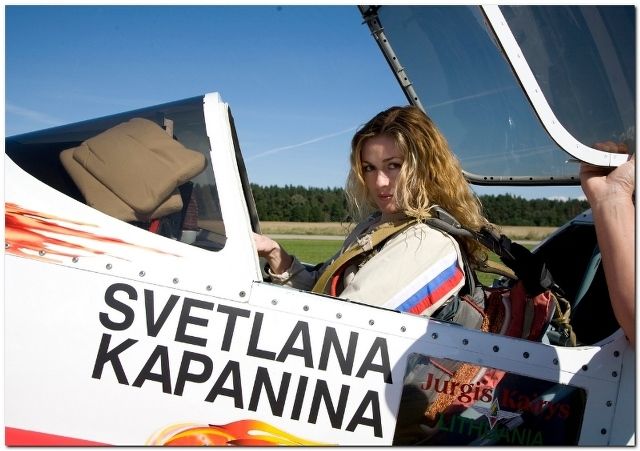 А это Светлана Капанина — семикратная абсолютная чемпионка мира среди женщин по высшему пилотажу. Кроме множества наград, она получила медаль как лучший пилот столетия.
