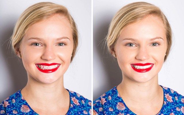 1. Помада отпечатывается на зубах