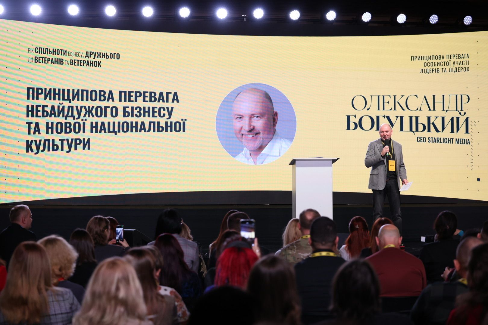 Олександр Богуцький, СЕО Starlight Media: «Рік тому лише 20 компаній вирішили взяти на себе відповідальність і підписати принципи, а сьогодні їх понад 110 — це бізнеси, що не залишилися осторонь, а зробили свідомий вибір діяти. Після кожного переломного моменту наша країна отримувала шанс змінитися, але саме після цієї війни вона стане іншою — і це залежить від особистої відповідальності кожного. Сьогодні ми говоримо не лише про плани, а й про звіт — наскільки бізнес готовий бути відповідальним і залученим. Підтримка ветеранів і ветеранок — це не формальність, а щоденні дії: створення можливостей, повага, вдячність, готовність простягнути руку допомоги та забезпечити їхню присутність на всіх рівнях компаній».