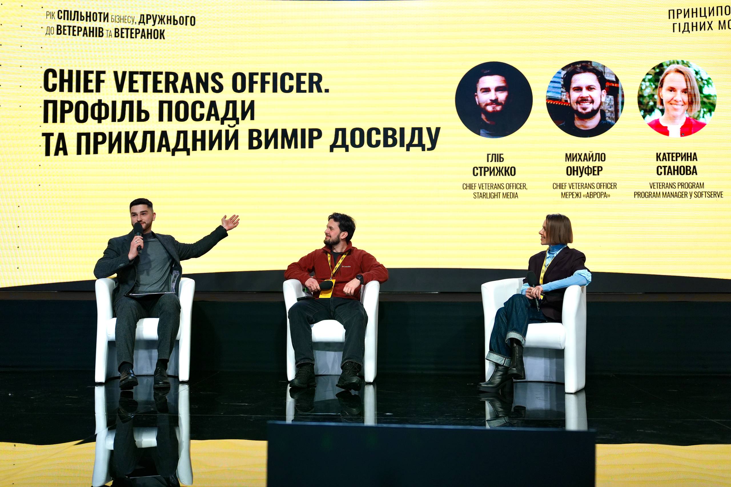 - Гідні можливості та системні ролі. Обговорення профілю Chief Veterans Officer як нової управлінської функції, а також практик справедливого рекрутингу, повернення на роботу, освіти й перекваліфікації ветеранів і ветеранок.